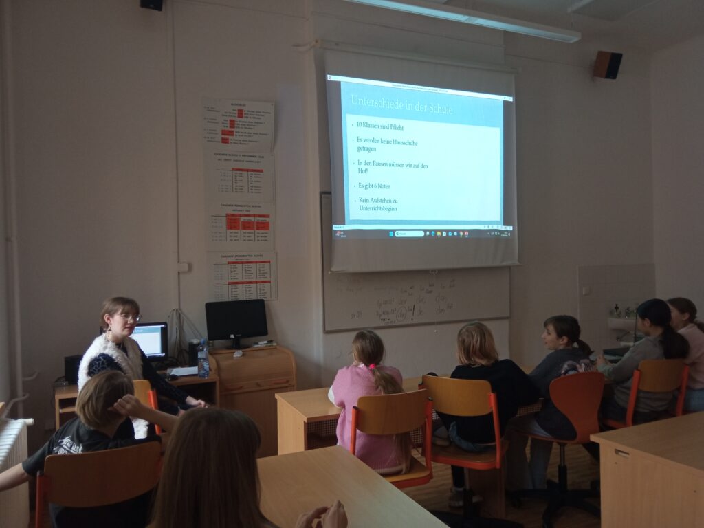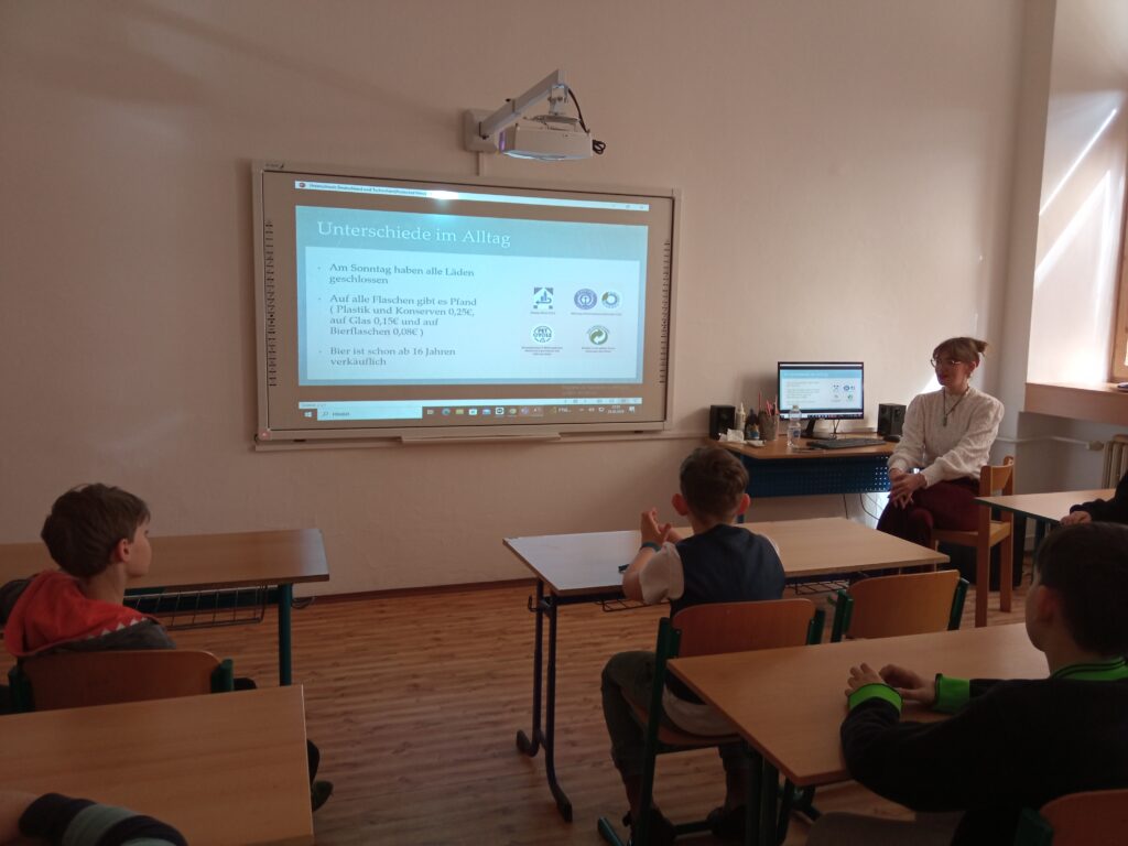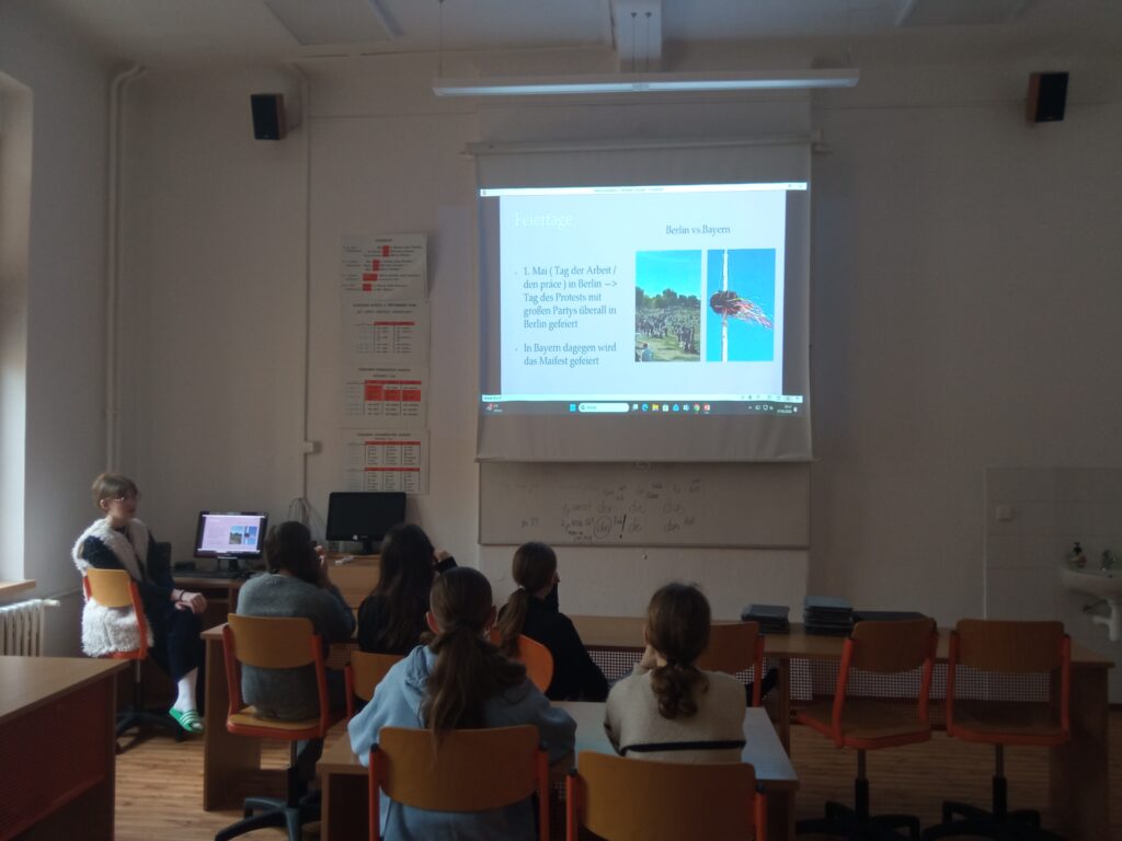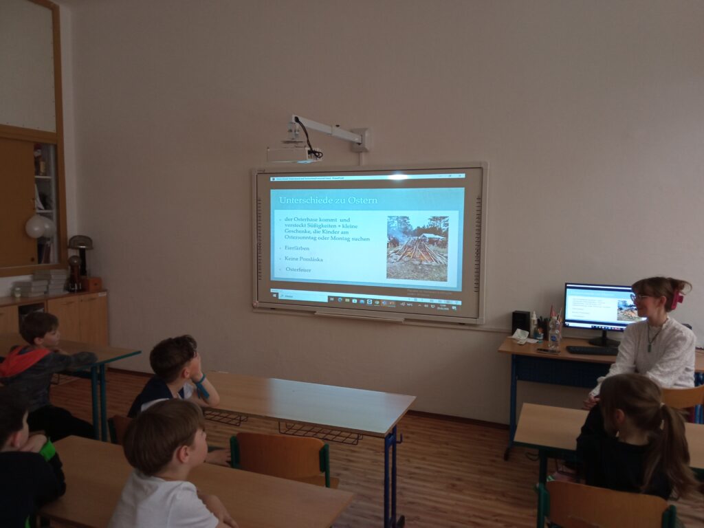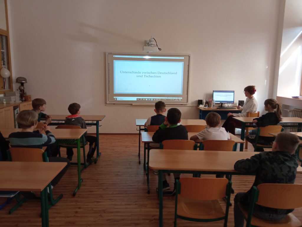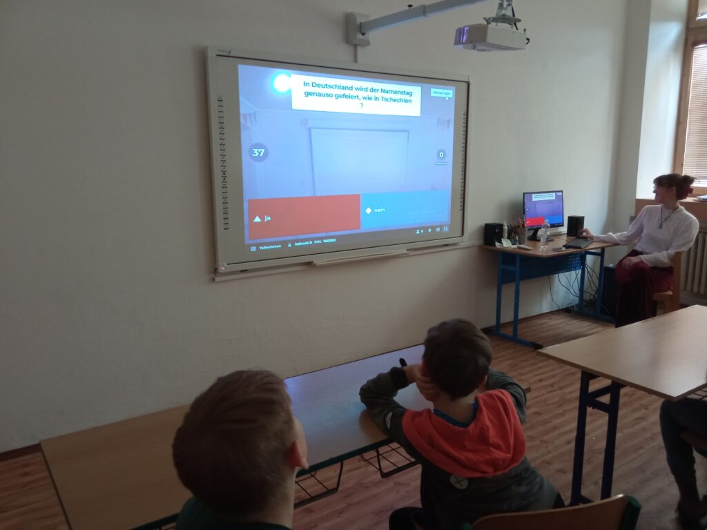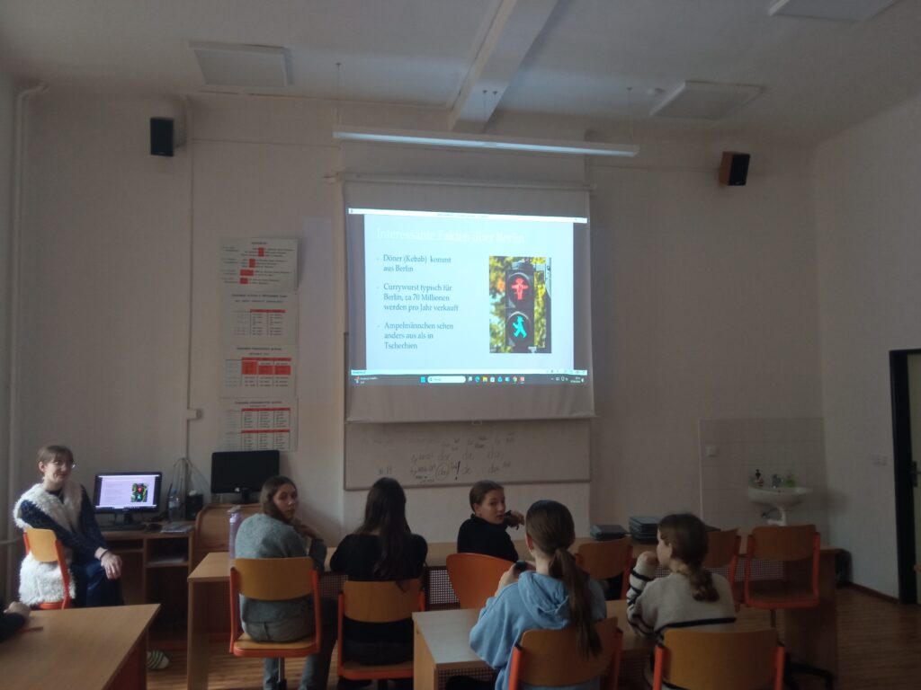 Slečna Ziemer si pro děti na závěr své praxe připravila dvě poutavé prezentace. V té první představila své rodné město Berlín. Někteří žáci poprvé slyšeli pojem Berliner Mauer a připomněli si tak nedávnou historii. Děti i leckteré pedagogy velice zaujala prezentace druhá, pojednávající o (nejen kulturních) rozdílech mezi námi a Německem. Děti měli po celou dobu spousty otázek. Na závěr obou prezentací žáky čekal zábavný kvíz, ve kterém si ověřili své znalosti.